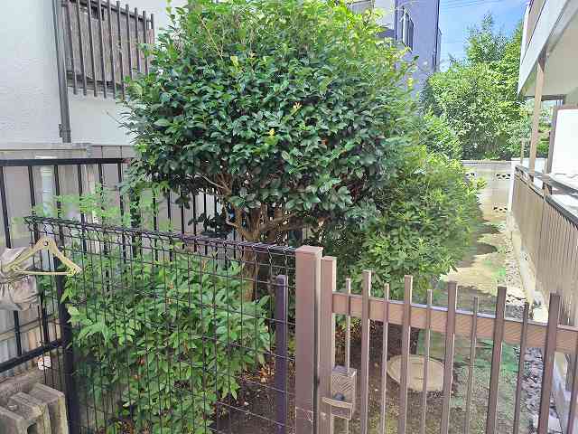 このように、アパートの景観を損ね、通行の妨げになっていた部分を大胆に剪定し、樹形を整えることで、見た目も安全性も大きく改善します。