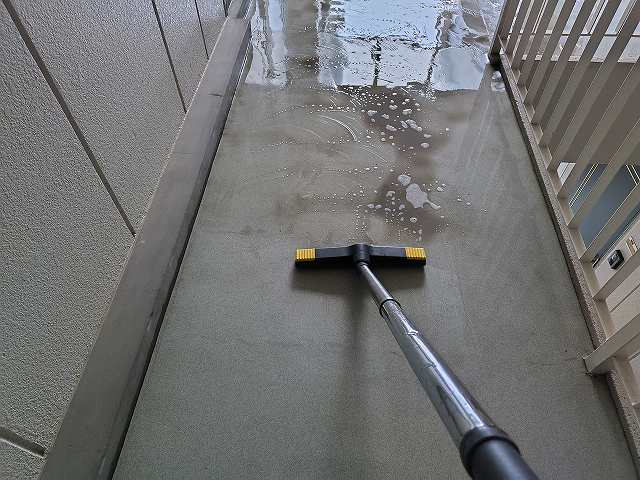 今回は、埼玉県川越市のマンションオーナー様よりご依頼いただいた、共用廊下の定期清掃(スポット機械洗浄)の様子をご紹介します。